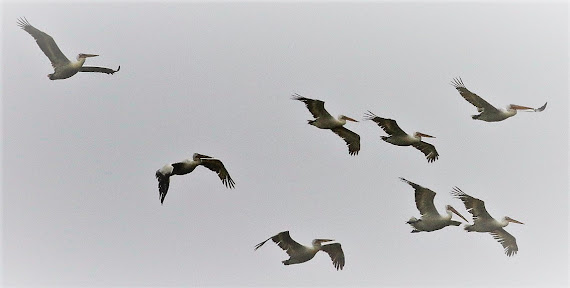 There were approx 15 Dalmatian Pelicans that flew right towards us which was quite a sight , i picked out a single Pallas's Gull that flew straight over the pool and out of sight.
