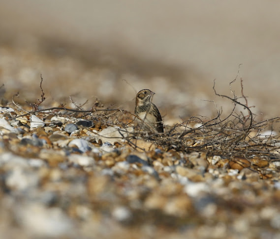 We managed to locate them below the shingle ridge and to my delight the 4th bird was a Lapland Bunting (♂ winter).