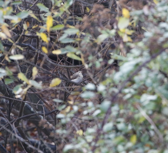 The Red Breasted Flycatcher spent most of it's time in the Sallows near the road and every now and again you could hear it call.